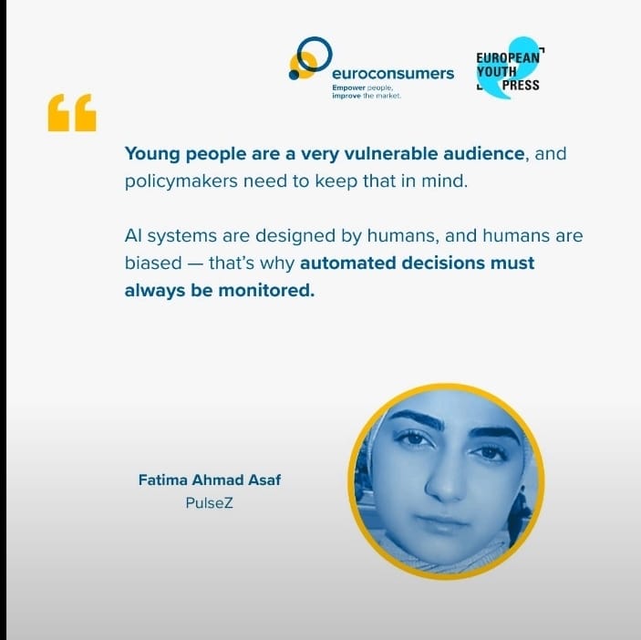 For the young people involved, the webinar was more than just a panel discussion. It was an opportunity to challenge assumptions, question existing systems, and highlight the realities that teenagers experience online. As a participant in the panel, I had the chance to share several key perspectives on digital fairness and the role young people play in shaping a safer and more transparent digital environment.