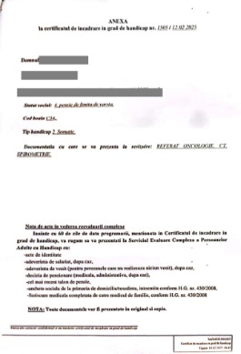 The DGASPC said that in their records, Gabriel is scheduled for the next day at 1:00 PM to be evaluated by the commission. The envelope received at home and the call were at odds, but the person in question went with the idea that it was just a mistake. However, even within the evaluation commission, the emphasis falls on the lack of interest in helping the patient. Arriving in front of the commission, Gabriel is asked by the doctor present if he has ever thought about going to work or if he feels fit to work. Gabriel replied that given his diagnosis, lung cancer with metastases, he would certainly not be able to go to work. Following this question, Gabriel was sent home, and a few days later he received the decision to classify him as disabled, which was of a mild degree, and thus he is not eligible to receive disability benefits. At the same time, within this decision, it was also written that Gabriel would already benefit from an old-age pension, which is completely erroneous, as he was employed at the time. The person involved filed a complaint with the DGASPC Prahova, but has not yet received a response.