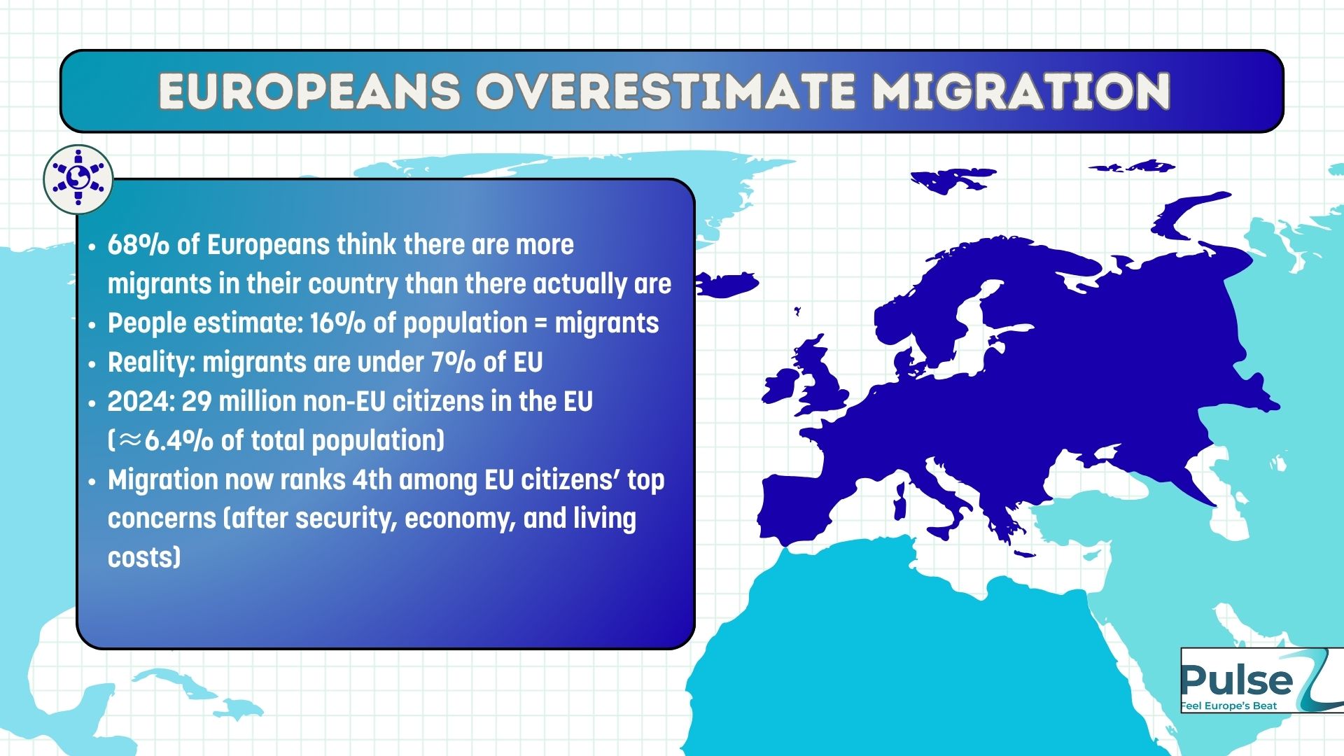 Gli europei tendono a sovrastimare il numero di migranti presenti nei loro Paesi. Secondo un sondaggio Eurobarometro del 2022, il 68% degli intervistati riteneva che nel proprio Paese ci fossero più migranti di quanti ce ne fossero effettivamente. In media, si pensava che i cittadini extracomunitari rappresentassero il 16% della popolazione, mentre la cifra reale è inferiore al 7%.