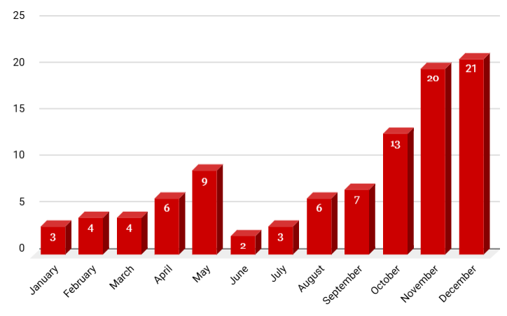 Als je je 2-3 maanden van tevoren probeert voor te bereiden op het prijzenfestival, zul je merken dat de voorspelde kanshebbers nog niet zijn uitgebracht. Ik heb alle winnaars van de Oscar voor Beste Film en de maand van hun officiële release verzameld en de resultaten samengevat in een staafdiagram. De resultaten laten zien dat meer dan de helft van de winnaars van de Oscar voor Beste Film in oktober (13), november (20) en december (21) is uitgebracht. De periode waarin films in aanmerking komen voor een Oscar is een volledig kalenderjaar. Waarom schuiven studio's de bioscooprelease van hun beste films dan bewust naar het einde van het jaar?