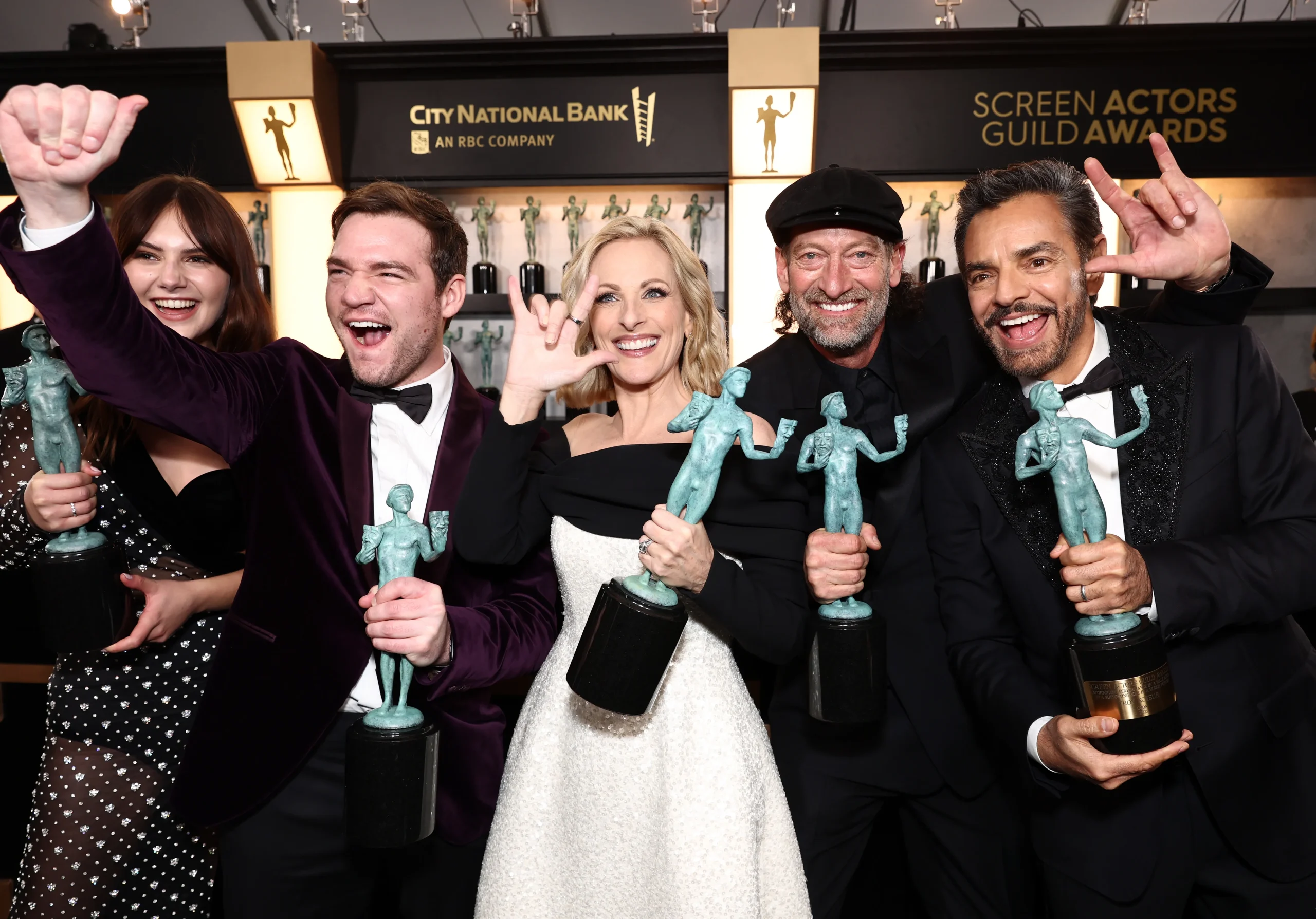 De cast van CODA (Beste Film van 2021) na het winnen van de SAG Ensemble Award.
